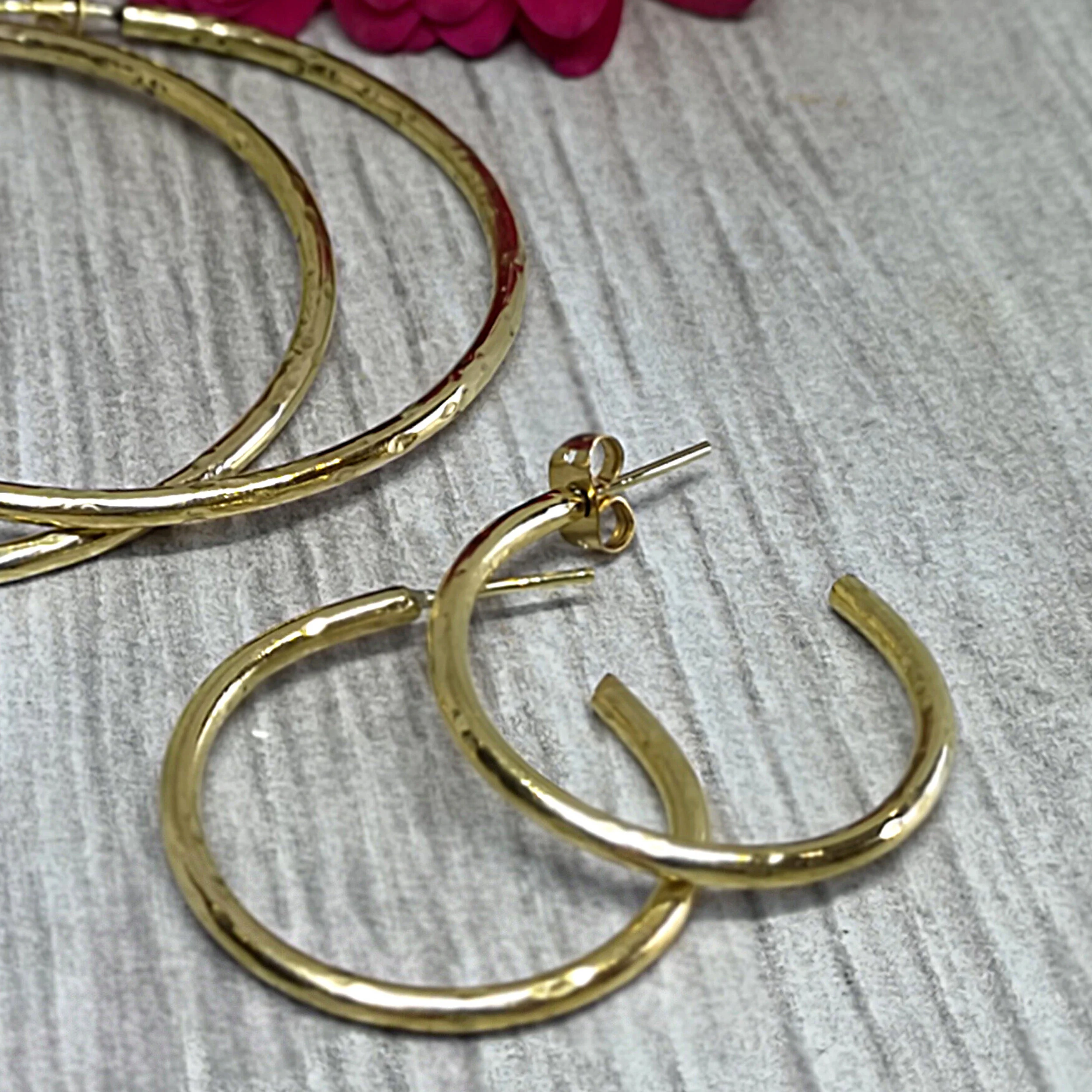 Small Hammered Brass Hoop Earring